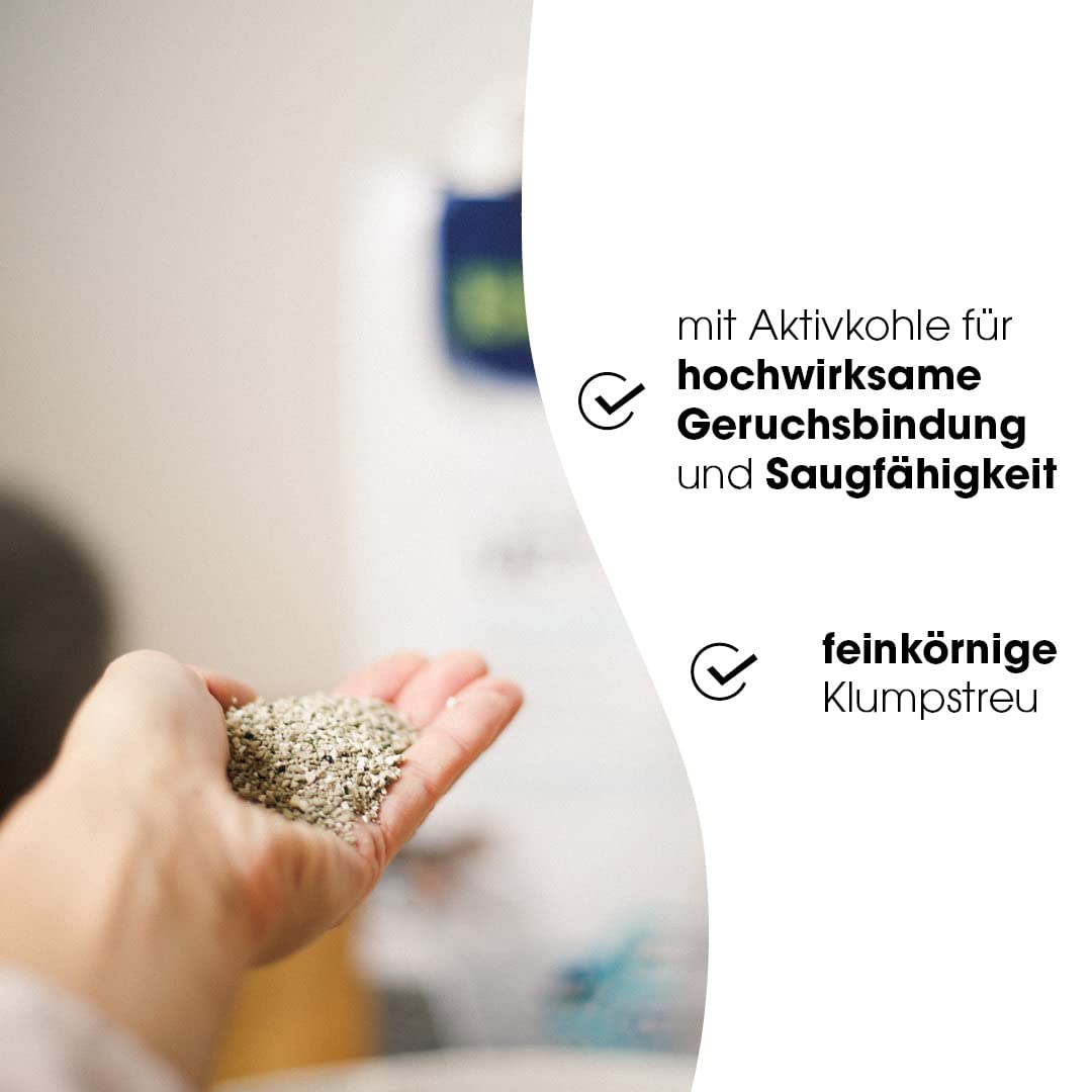 - KLUMPENBILDUNG: Die feine Körnung ist äußerst ergiebig und bildet besonders flache Klumpen, die das Reinigen der Katzentoilette erleichtern