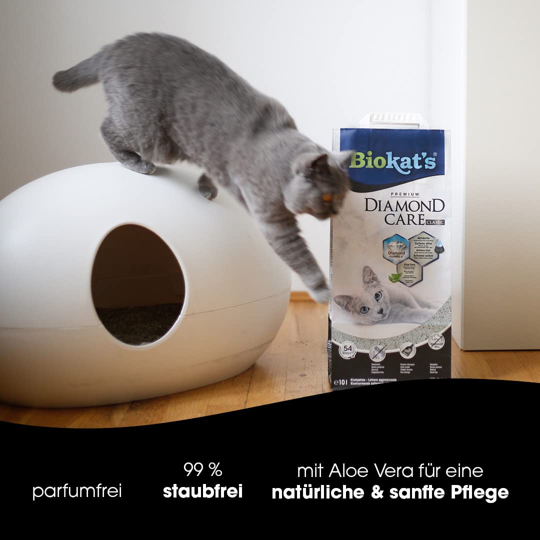 Biokat's Diamond Care Classic Katzenstreu ohne Duft - Feine Klumpstreu aus Bentonit mit Aktivkohle und Aloe Vera - 1 Sack (1 x 10 L)