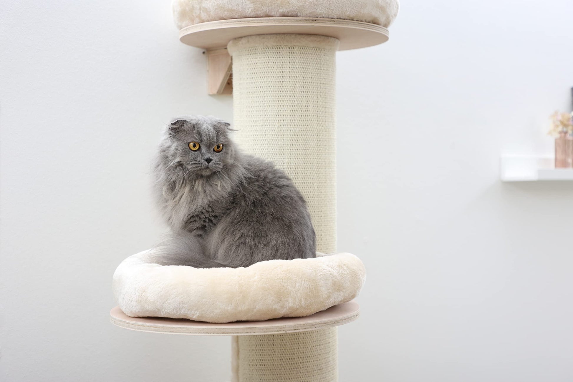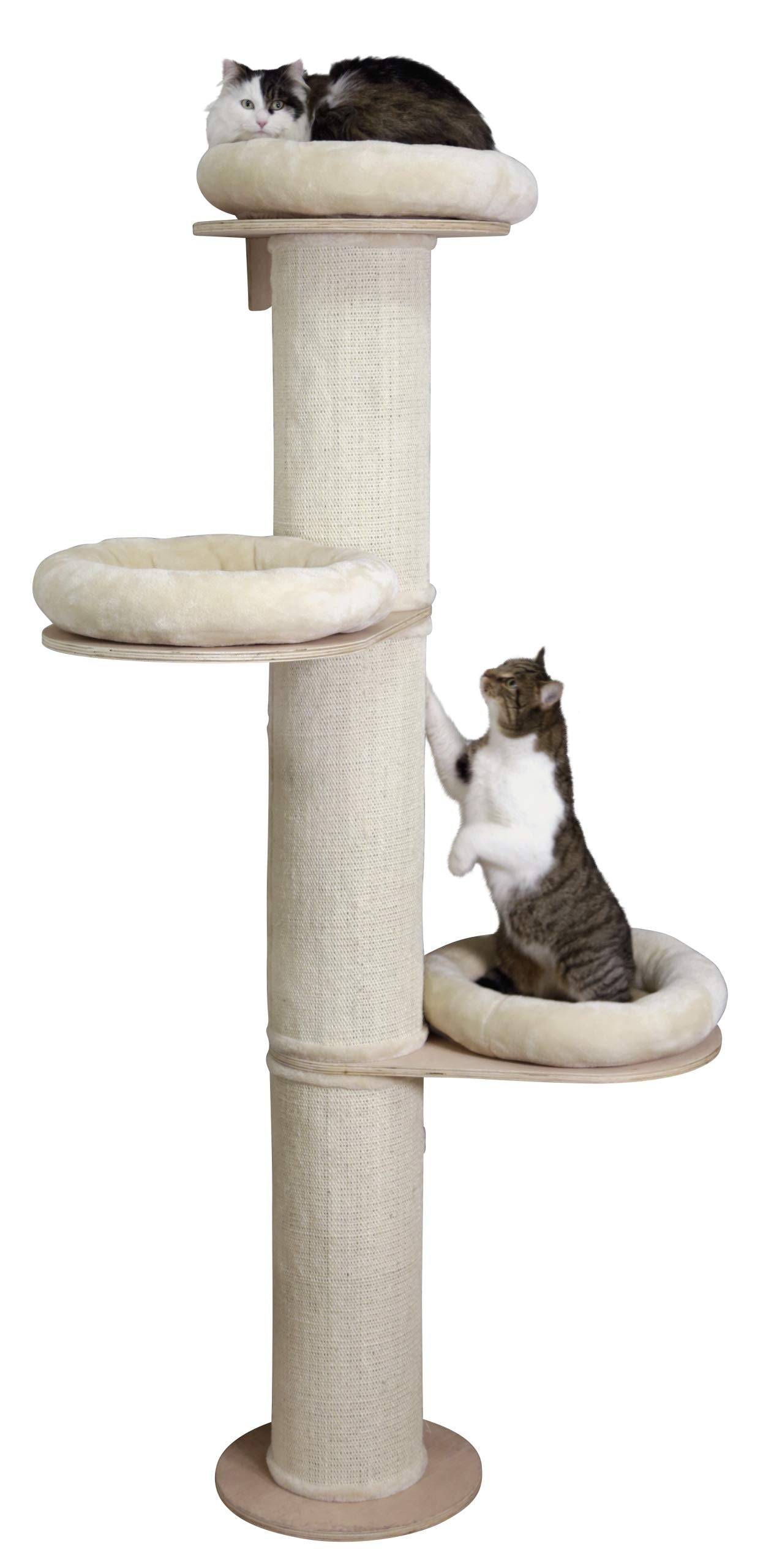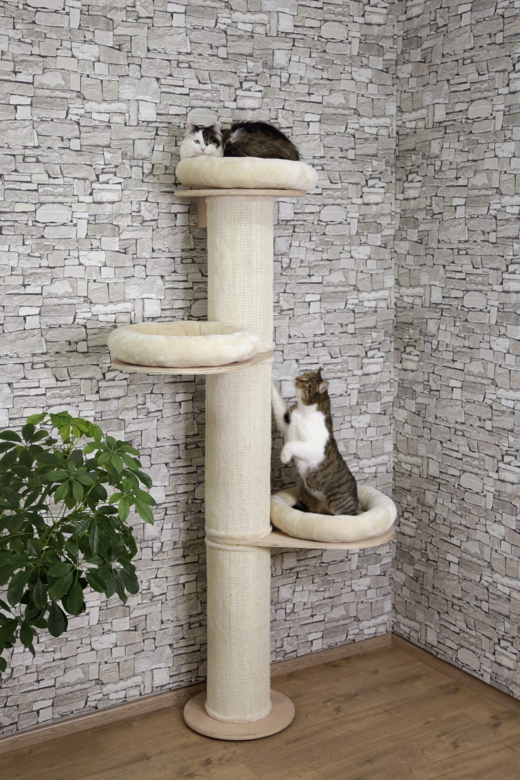 Krallenpflege: Der Kratzbaum besteht aus drei Sisalteppich-Säulen die sich zu einer massiven Kratzsäule verbinden. Hier können sich Ihre Stubentiger perfekt die Krallen schärfen.