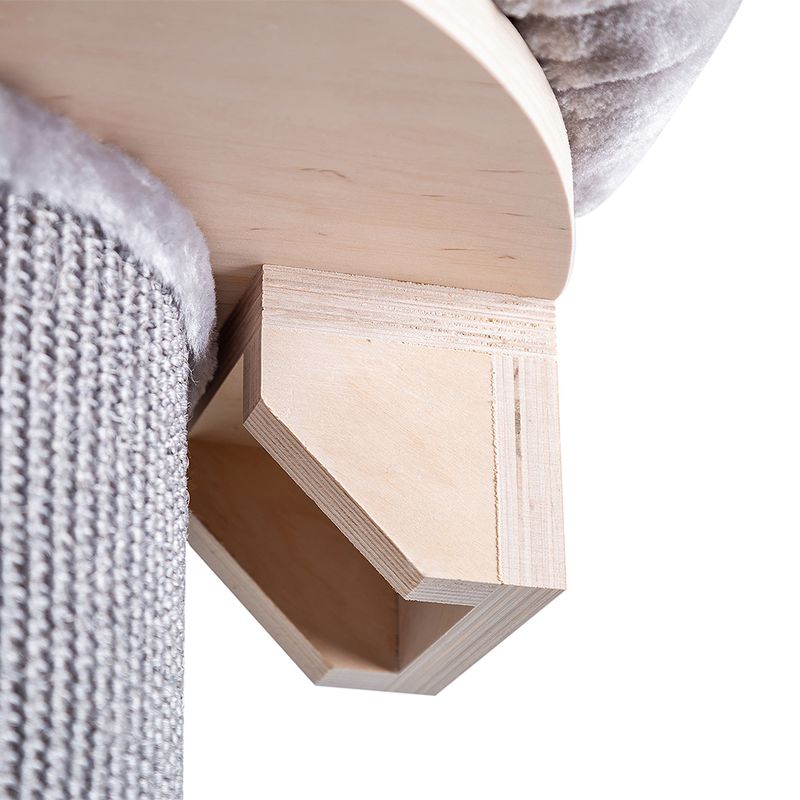 Die unbehandelten Schichtholzplatten aus baltischem Birkensperrholz stammen aus nachhaltiger Waldwirtschaft. Die hochwertigen Kratzteppiche werden aus natürlichem Sisal gefertigt.