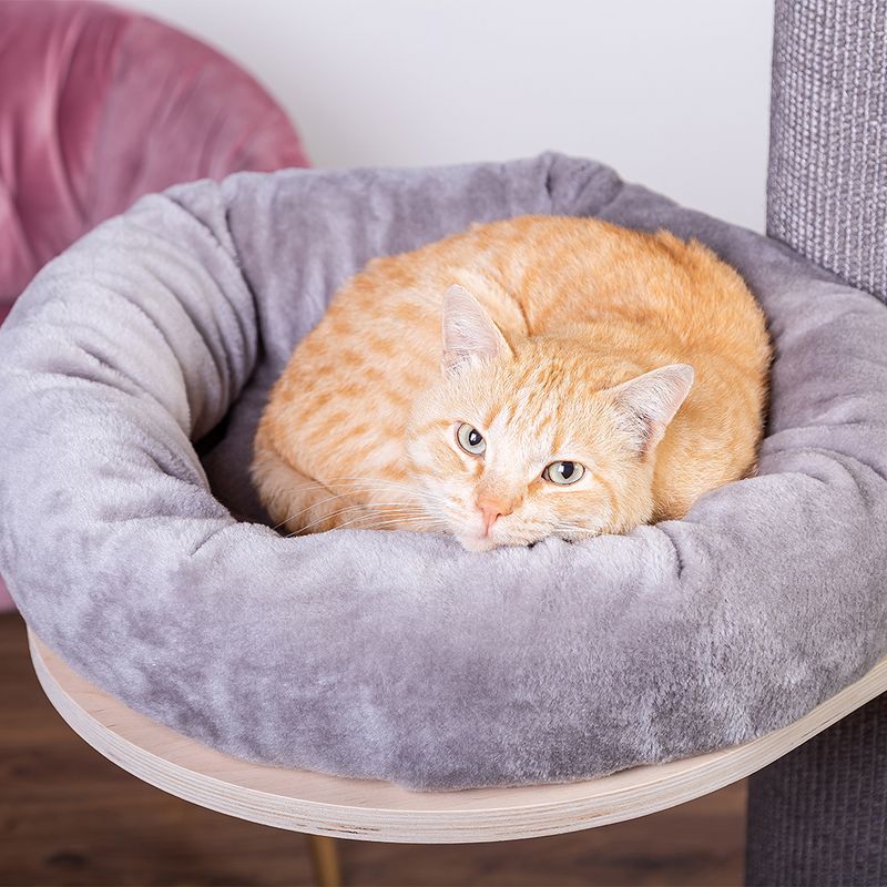 Die Liegeflächen sind ganz weich mit Kuschelbetten ausgestattet. Da kannst du entspannt schlafen und es dir bequem machen. Brauchst du nicht? Dann sag deinen Menschen Bescheid, dass sie die Kratzsäule ohne Betten aufstellen sollen – das geht nämlich auch!