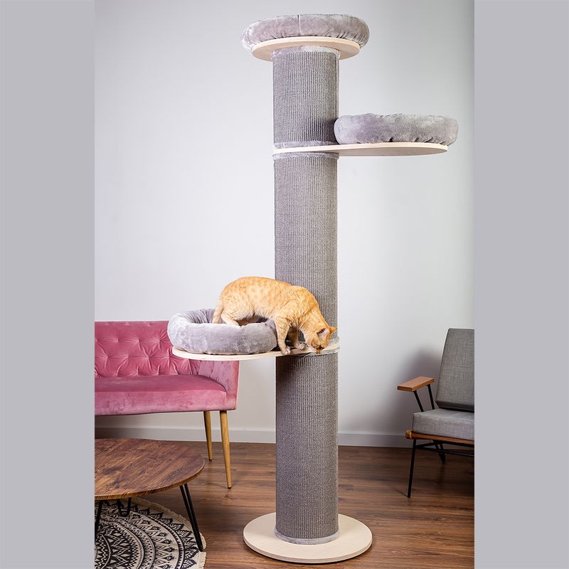 - Gigantische Kratzsäule mit gemütlichen Kuschelbetten auf stabilen Echtholzplatten