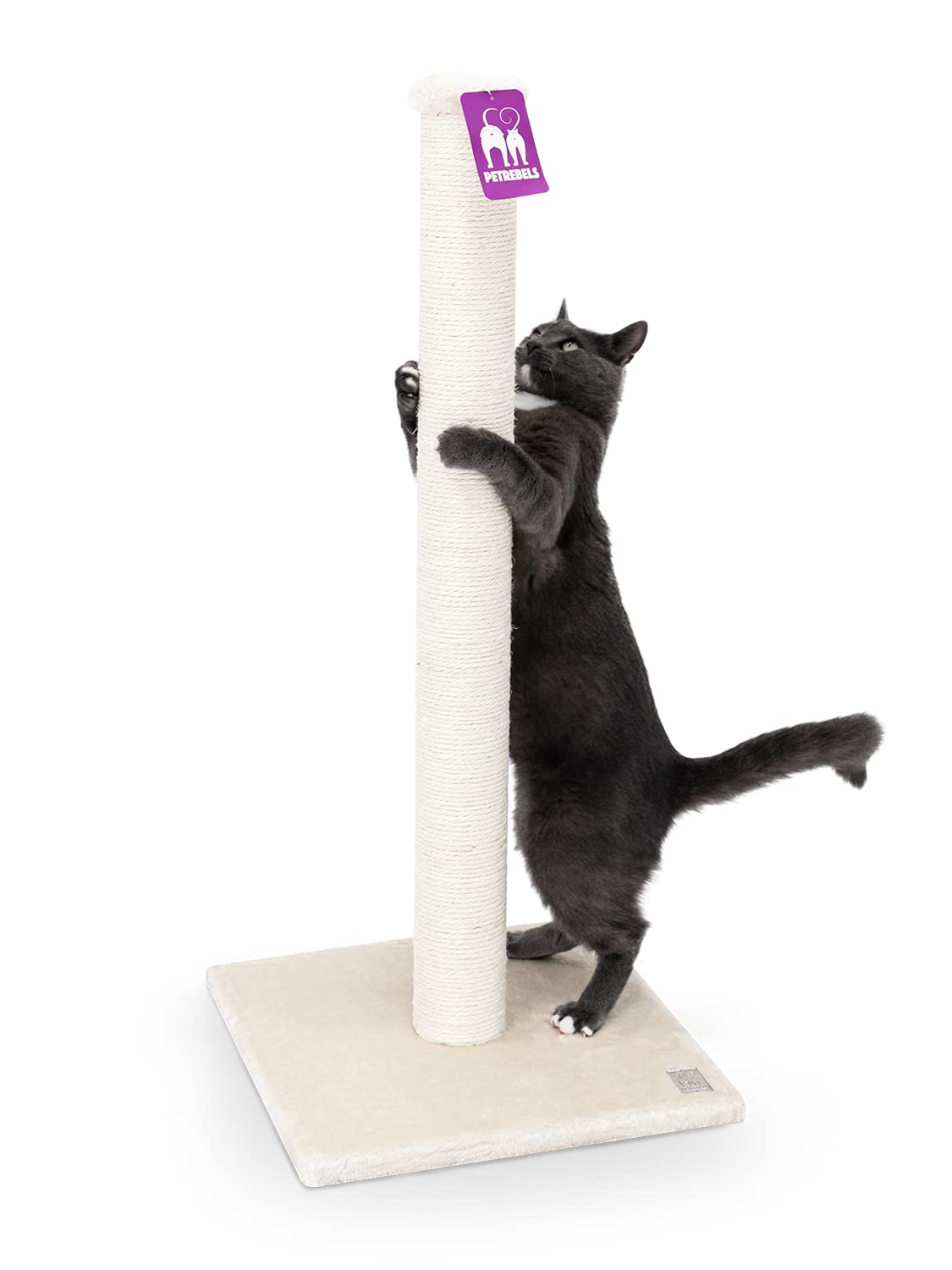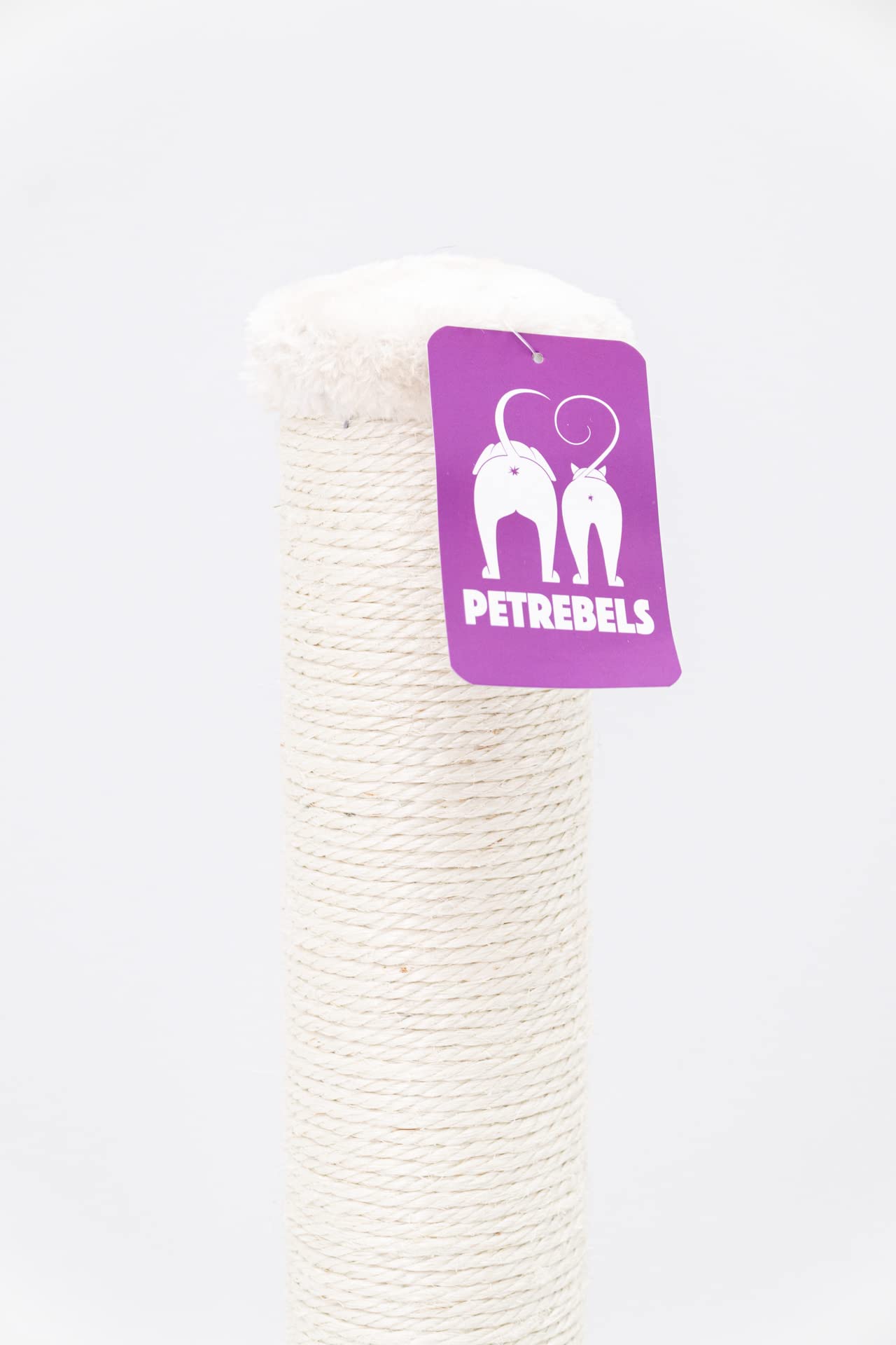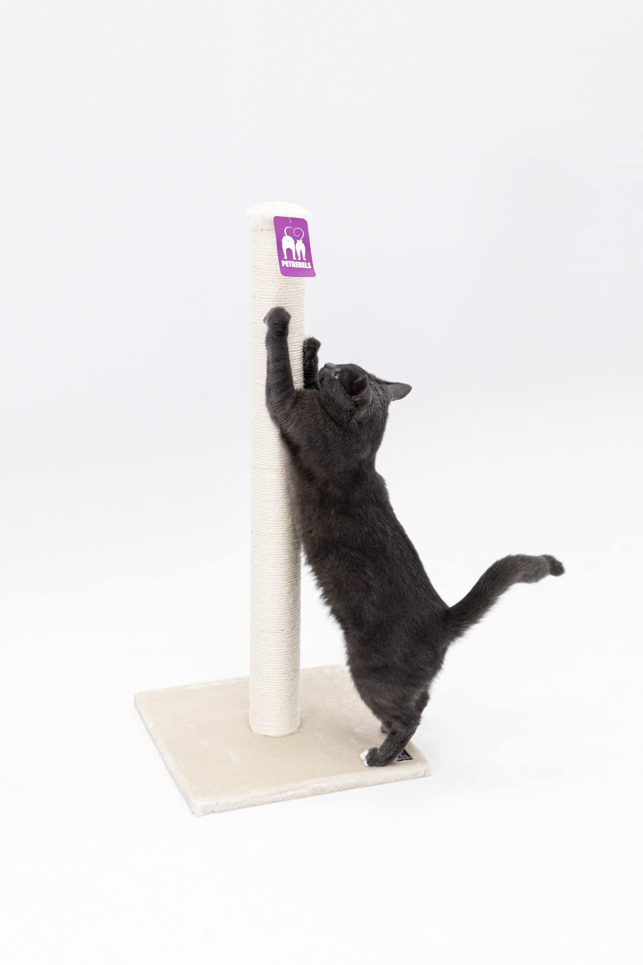 Petrebels Kratzbaum Maine 90 cm Hoch, mit Extra Stabiler Bodenplatte und Natur-Sisal Stamm, 40 x 40 x 90 cm, Farbe Creme/Beige